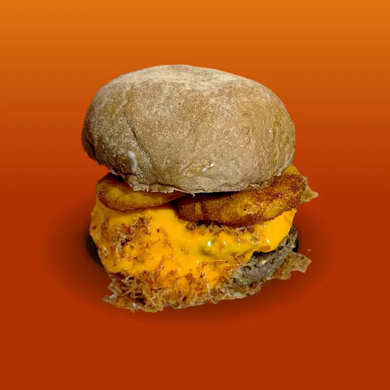 Pão brioche, carne artesanal, mussarela, cebola empanada e molho especial